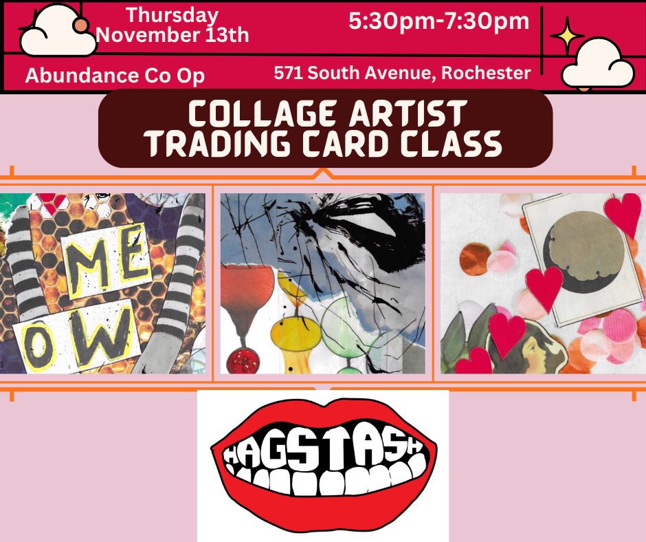 No prior collage experience is necessary, all materials are provided. Come ready to cut, glue, and trade!