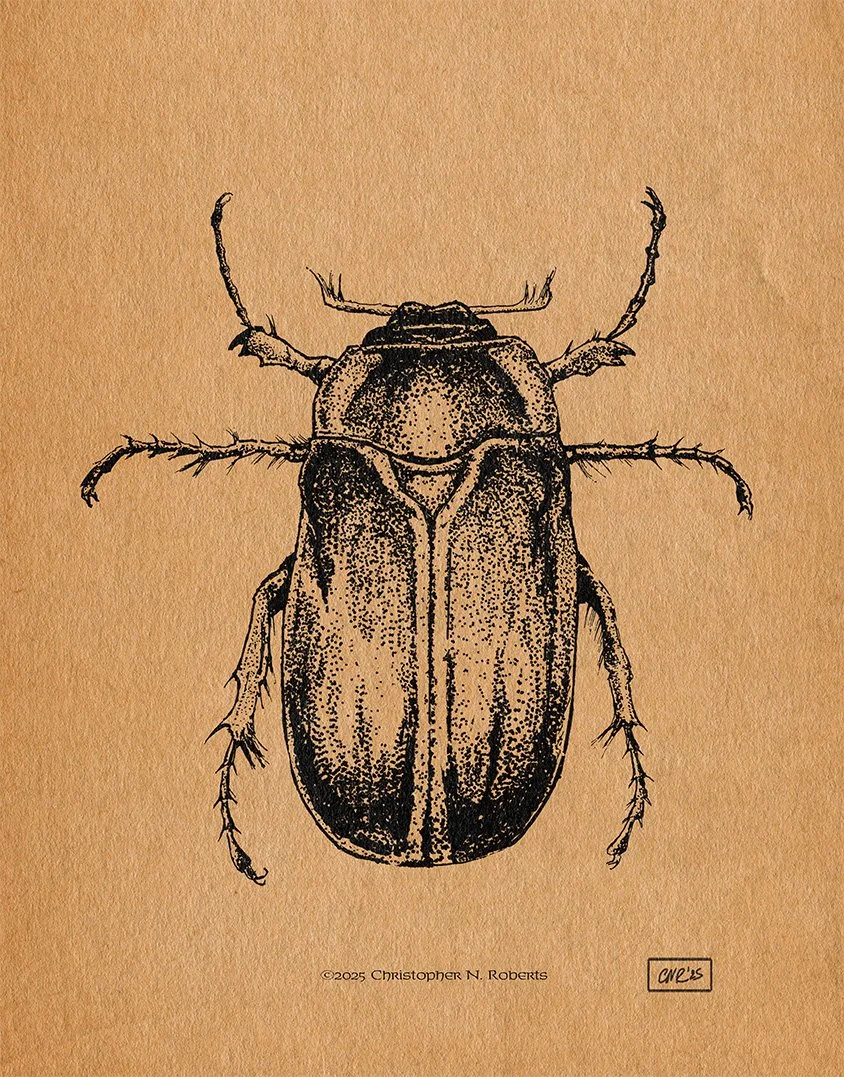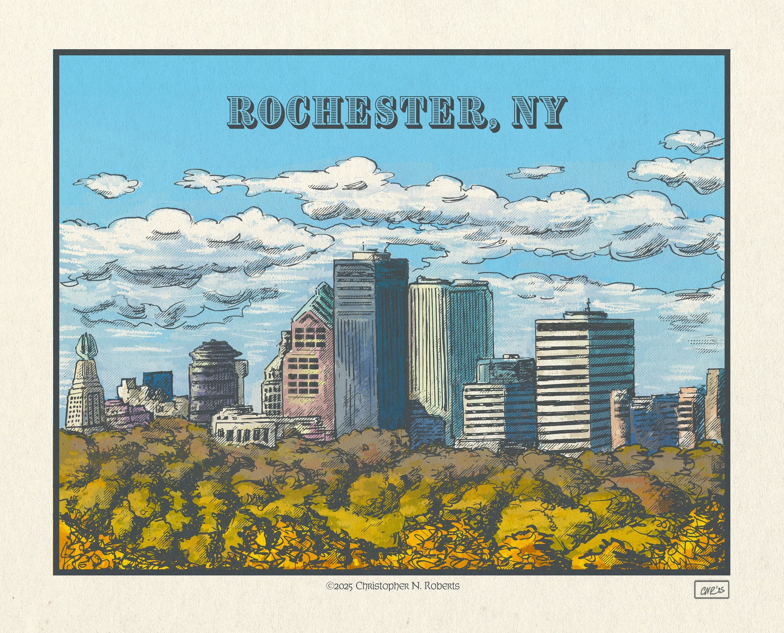 Christopher N. Roberts is a Rochester-based whimsical natural science illustrator working in pen and ink, watercolor, gouache, and digital media. His playful art features animals, insects, botanicals, landscapes, and iconic landmarks, created to spark joy and a sense of wonder.