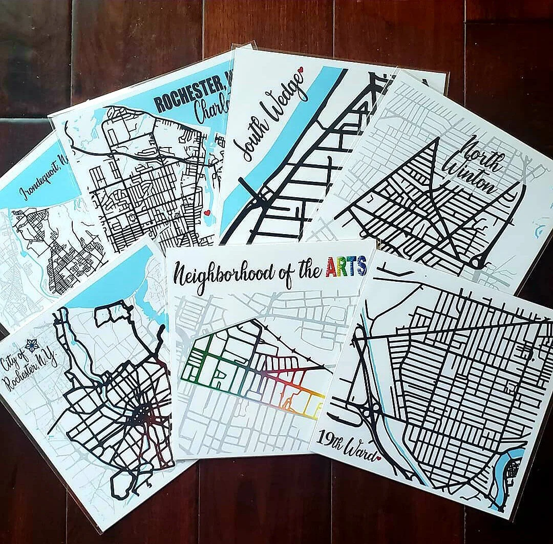 May and Birch specializes in custom designed pieces such as wooden ornaments, jewelry, maps, prints and locally-inspired pieces specific to Rochester, surrounding areas, schools and lakes. I design, print and cut, everything in-house.
